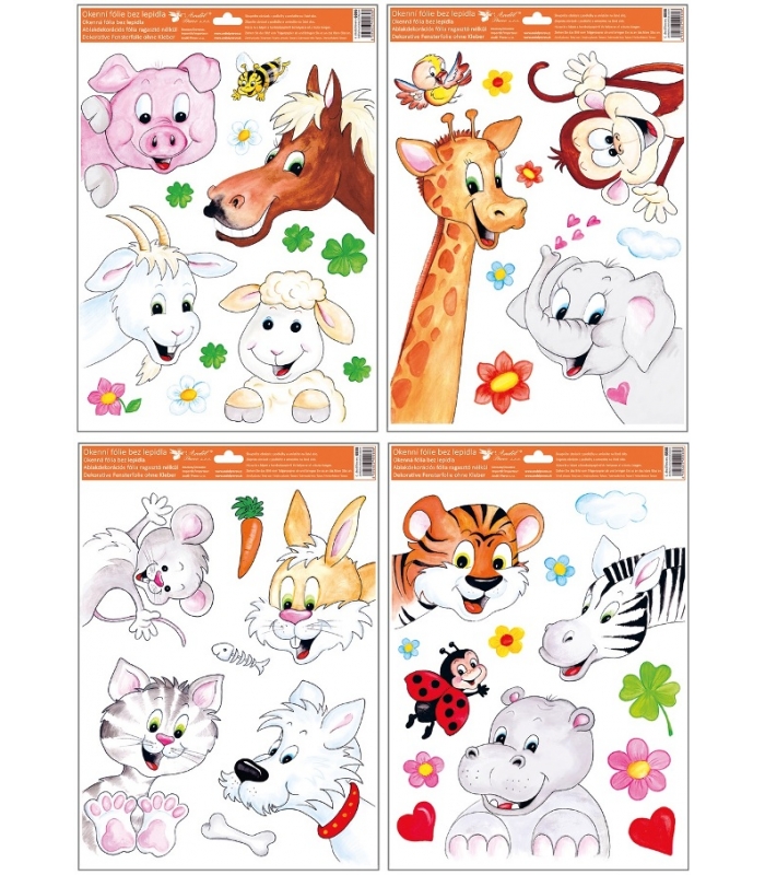 Fólie adhezní na okno celorok Vykukující zvířátka 30 x 42 cm