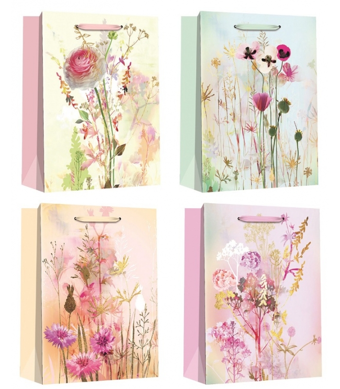 Taška dárková L 26x32x12cm Květiny zlatá ražba 1
