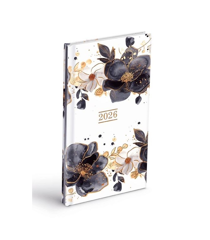 Týdenní diář pro rok 2026 s motivem bílých květů. Je výborným pomocníkem při organizování Vašeho času. Povrch obálky je vyroben z lesklého lamina. Diář má odtrhávatelný spodní rožek, který umožní rychlé nalistování aktuálního týdne.
