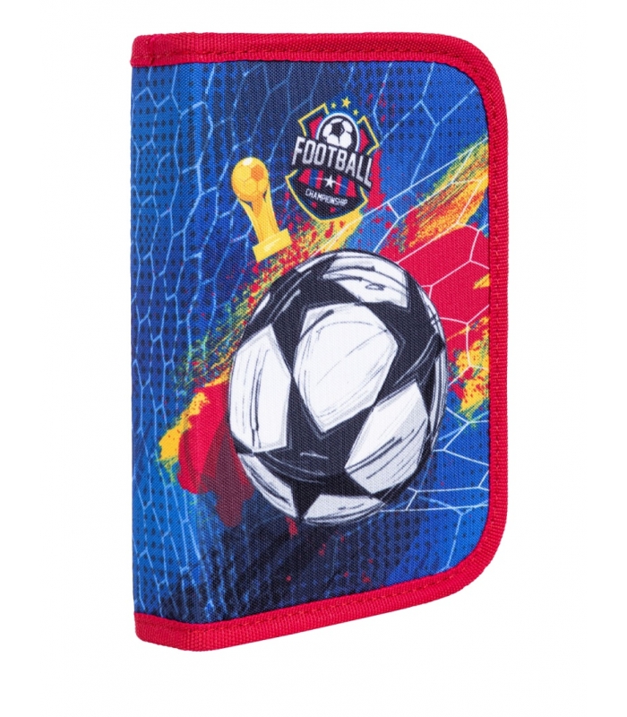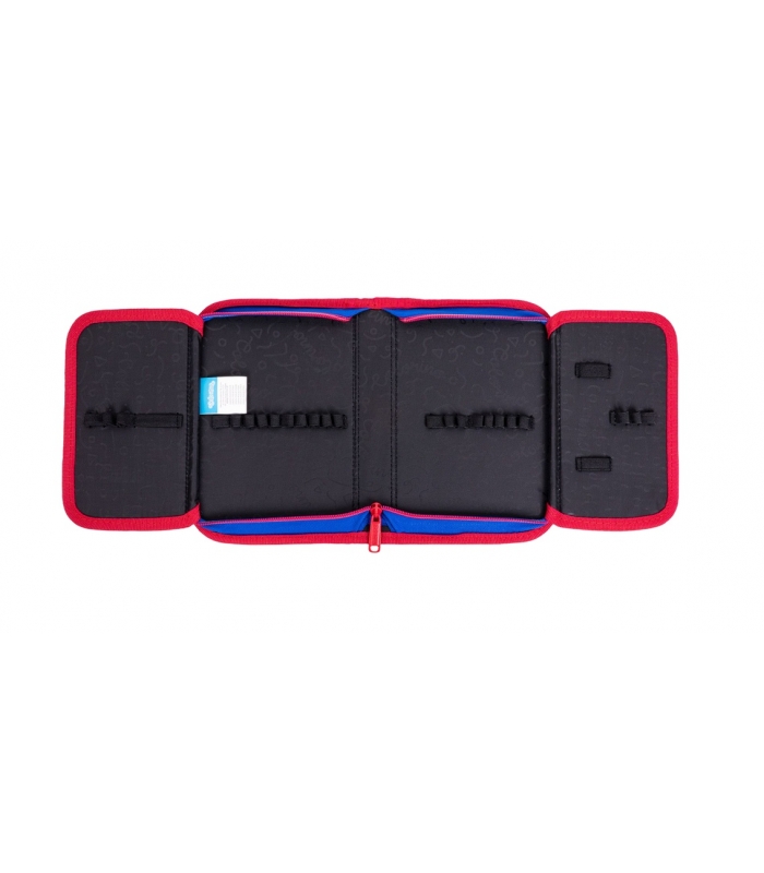 Rozkládací penál s přihrádkami na psací výbavu a jiné doplňky. Dvě postranní chlopně jsou opatřeny transparentní kapsou, chránící obsah penálu. Odolný kovový zip je sladěný s kontrastním s lemováním. Vybavení není součástí penálu.
