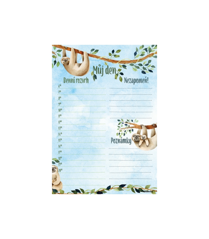 Detailní rozvržení dne pro ty, kteří chtějí mít pod kontrolou každou hodinu. Vhodný pro pracovní vytížení, studijní plán nebo denní rutinu. Kombinuje časový harmonogram s místem pro úkoly i poznámky.