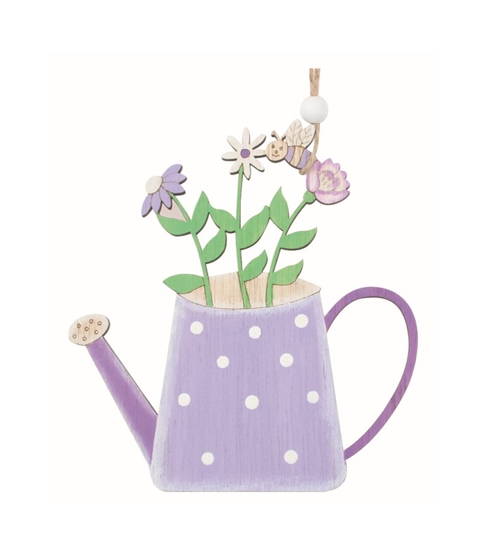 Dřevěná konev fialová 12 × 13 × 0,5 cm, na zavěšení