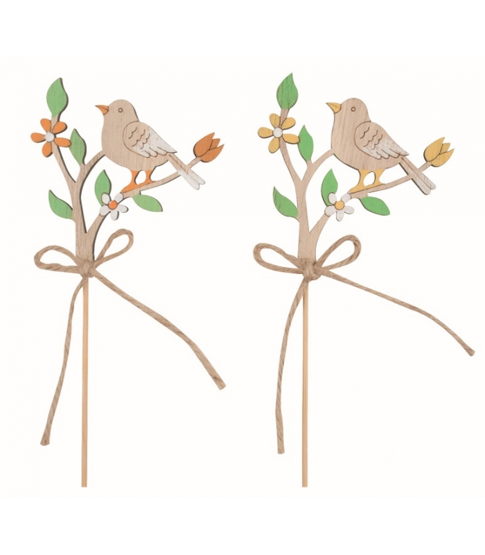 Dřevěná dekorace ve tvaru ptáčka sedícího na větvi je hravý a originální doplněk pro vaše jarní a velikonoční aranžmá. Díky praktické špejli ji jednoduše zapíchnete do květinových aranžmá, květináčů nebo ji využijete jako dekorativní prvek při zdobení stolů či kreativním tvoření. Tento motiv ptáčka přináší do prostoru veselý a přírodní detail, který krásně oživí sezónní výzdobu a navodí jarní atmosféru. Produkt je dostupný ve 2 barevných variantách – žlutá a oranžová.