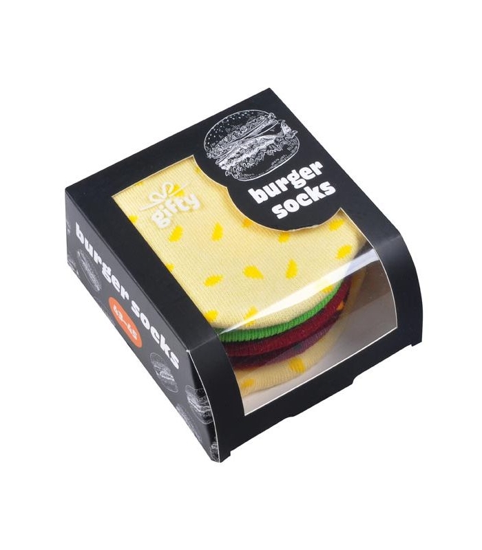 ponožky BURGER ve velikosti 38–42. Na první pohled burger, na druhý – stylové